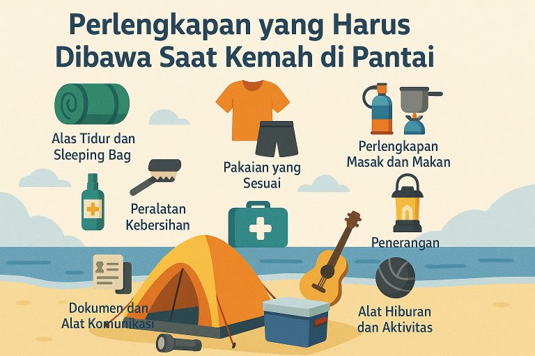 Berikut ini adalah daftar perlengkapan penting yang harus dibawa saat berkemah di pantai: